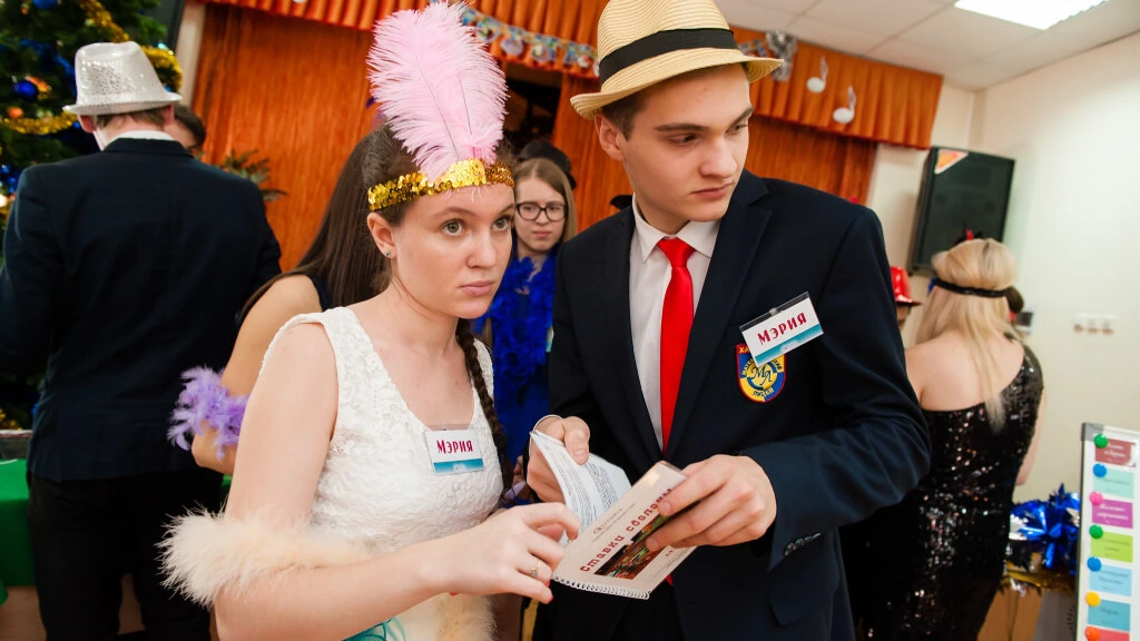 На игре выпускников встречают ведущие — уже в стилистике квеста. Они настраивают на нужный лад, раздают знаменитые гангстерские шляпы, вуалетки и другие тематические аксессуары всем желающим. Ребят делят на команды и каждой достается своя уникальная легенда. Теперь им придется постараться, чтобы добится целей!
